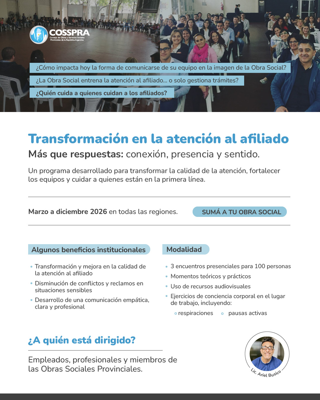Sumá a tu Obra Social. Consultas a: capacitacion@cosspra.com.ar