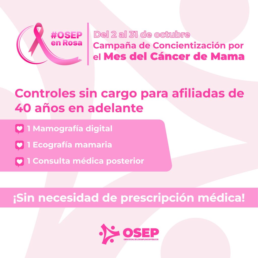 Está dirigido a las afiliadas con 40 años o más que aún no se hayan realizado el chequeo anual gratuito que cubre OSEP. Desde el 2 al 31 de octubre podrán acceder sin cargo y sin prescripción médica a:
