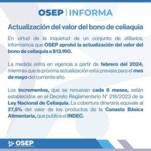 OSEP informó la actualización del valor del bono de la celiaquía. Se aprobó el incremento [...]
