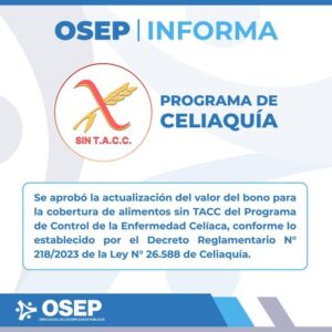 OSEP aprobó el incremento del valor del bono para la compra de alimentos sin TACC, [...]