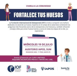 Santa Fe. IAPOS invita a la charla “Fortalece tus huesos”