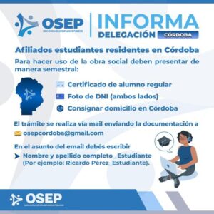 La Delegación OSEP Córdoba informa a los afiliados estudiantes residentes en esa provincia, que para [...]