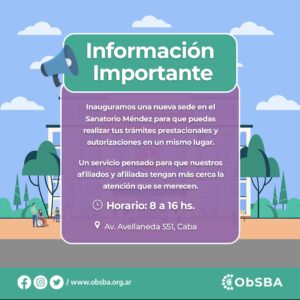 La Obra Social de la Ciudad de Buenos Aires -ObSBA- informa que se pueden realizar [...]
