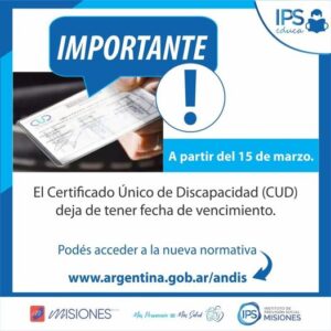 IPS Misiones informa que a partir del 15 de marzo, los Certificados Únicos de Discapacidad [...]