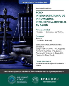 OBSERVATORIO DE SALUD (UBA): Nuevo espacio académico FORO INTERDISCIPLINARIO DE INNOVACIÓN E INTELIGENCIA ARTIFICIAL EN SALUD [...]