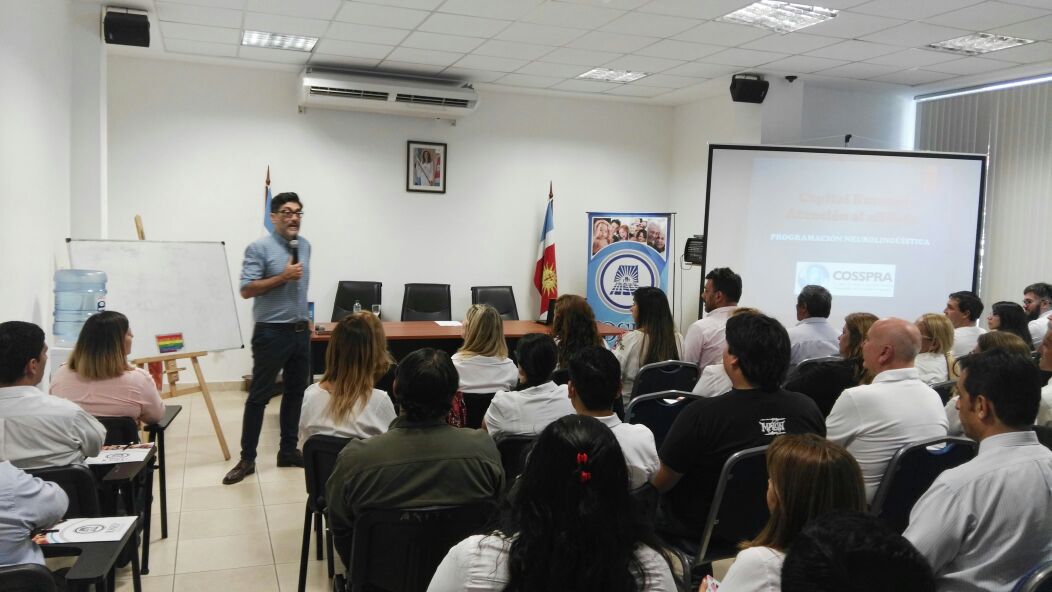 Ayuch inauguró la conferencia de prensa contando que “estamos con dos actividades en simultáneo. Una es la última jornada de capacitación del programa 2017, promovida por COSSPRA, bajo el título `Capital Humano y Atención al Afiliado´. Un entrenamiento para nuestros empleados que tiene que ver con la comunicación en todas sus direcciones: hacia afuera, con el afiliado, y la interna, entre compañeros, jefes, etc. Apostamos a mejorar cada día la atención de nuestros beneficiarios. Mientras que la segunda actividad, la llevamos a cabo los presidentes, en nuestra reunión de Junta Ejecutiva”.
