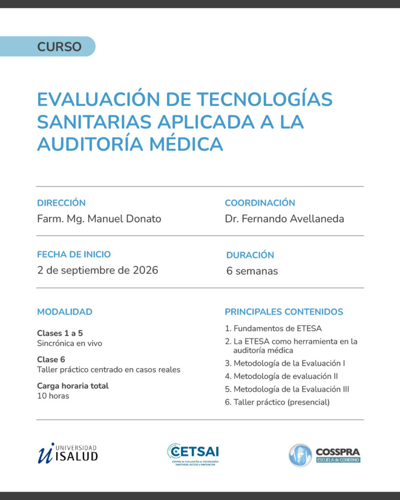 Curso: Evaluación de Tecnologías Sanitarias aplicada a la Auditoría Médica