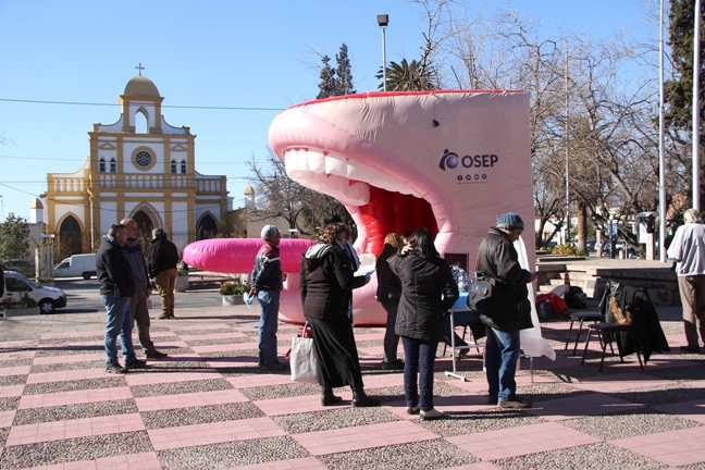 Durante la actividad se acercaron personas de todas las edades para observar el inflable, aprender a prevenir el cáncer bucal y realizarse un control odontológico con los profesionales de OSEP.