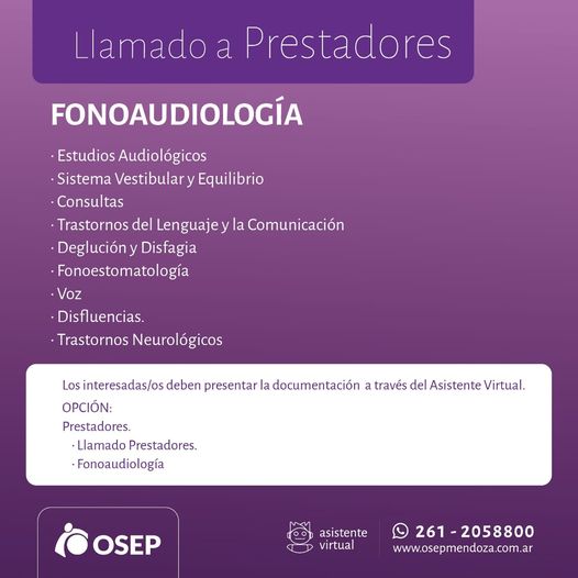 La Obra Social Provincial lanzó una convocatoria para prestadores de Fonoaudiología en las siguientes áreas: