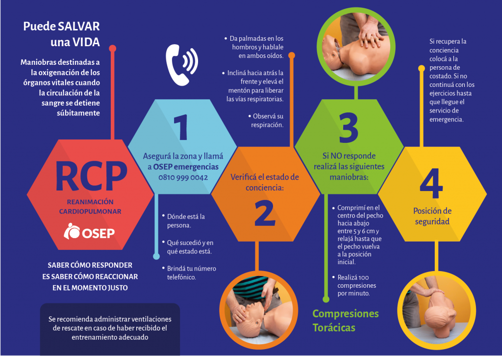 Cabe destacar que entre 30.000 y 40.000 personas mueren por año en Argentina a causa de muerte súbita, es decir 1 persona cada 15 minutos. La técnica de RCP, que OSEP difunde a través de diferentes acciones, puede ofrecer entre 40% y 50% más de posibilidades reales de recuperación a una persona que ha sufrido un paro cardiorrespiratorio si se realiza inmediatamente, aunque no sea ejecutada por un profesional de la salud, mientras se espera la llegada de una unidad de emergencia.