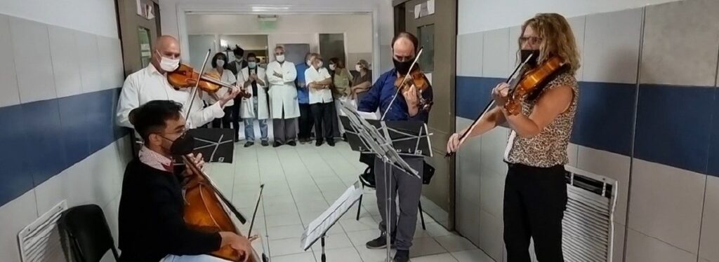 El Cuarteto de Cuerdas Ludwig se presentó en los pasillos del Hospital El Carmen. Fue para agradecer la recuperación de Miguel Ángel Cotignola, su fundador, quien en 2019 sufrió un accidente cerebrovascular (ACV) y fue atendido y recuperado en el efector de OSEP.
