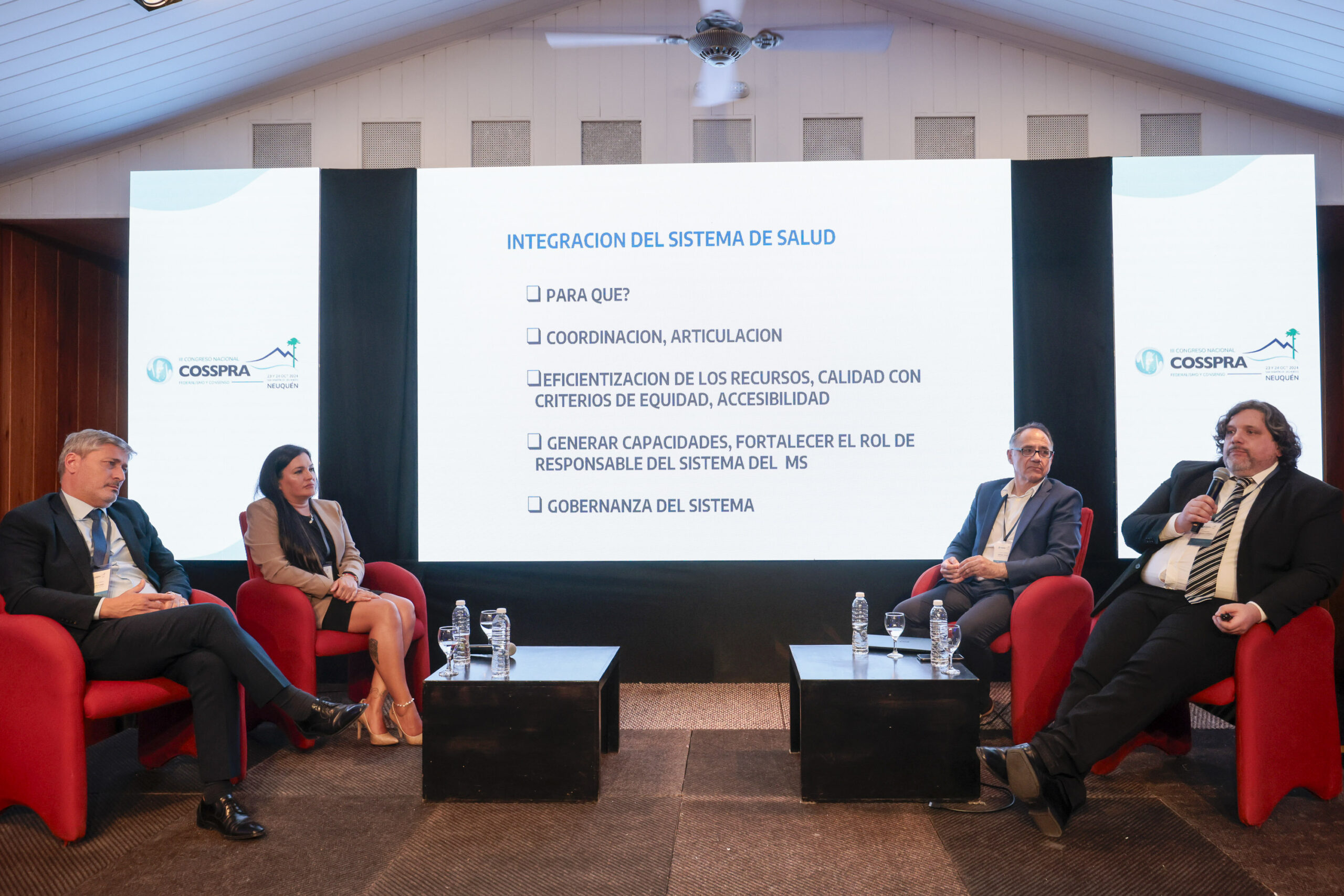 Para ahondar sobre la articulación de las políticas entre las OSP y el sistema de salud público-provincial como punto de partida, disertaron el presidente del COSSPRA y titular de OSEP Mendoza Carlos Funes, el presidente de SEROS Chubut Sergio Wisky y el vicepresidente del IOMA, Mariano Cardelli, coordinados por la presidenta de OSEF Tierra del Fuego Mariana Hruby.
