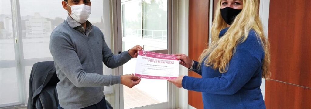 En esta oportunidad participaron del acto, la presidenta del Colegio Fisiokinésico de San Juan, Lic. Laura Orellano y la coordinadora del Programa del Adulto Mayor (PAM), Lic. Julieta Robles, quienes entregaron un reconocimiento, en primer lugar al interventor de OSP, Daniel Gimeno, quien expresó “soy un defensor del buen trato, creo que es crucial para todos”.