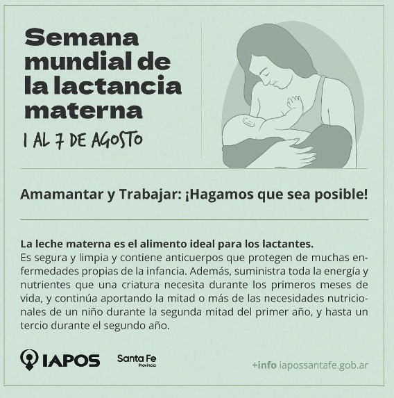 La Obra Social Provincial adhiere a la campaña por la Semana mundial de la lactancia materna que se lleva a cabo del 1 al 7 de agosto bajo la consigna “Amamantar y Trabajar: hagamos que sea posible”.