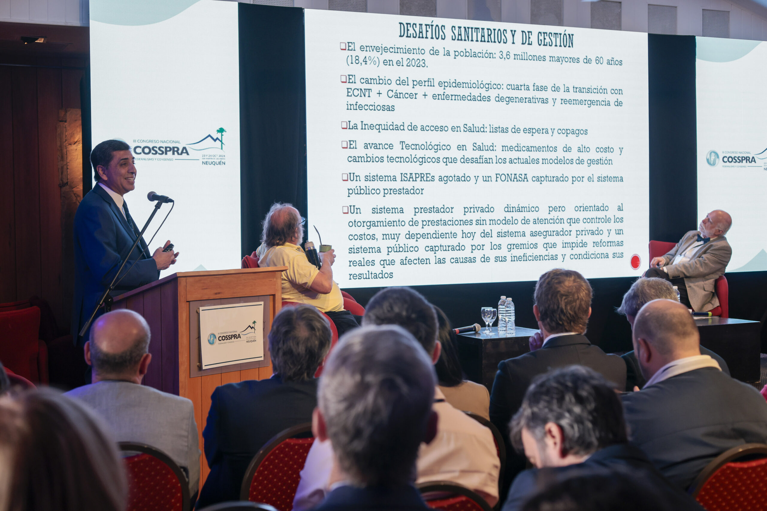 El dirigente chileno dijo además que “el sistema ISAPRE -privado- está agotado y el FONASA está capturado por el sistema público prestador y aparece como un gran articulador del sistema, con una cobertura del 85 a hospital público y un 15 a prestadores privados”.
